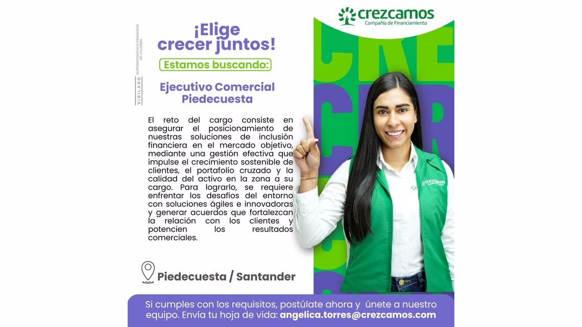 Elige ser parte de Crezcamos! somos una compañía comprometida en ayudar a transformar realidades de las comunidades de menores ingresos a través de soluciones financieras inclusivas. Brindamos espacios donde puedes formarte profesionalmente en liderazgo, habilidades comerciales, estratégicas e interpersonales, que te permitirán crecer y desarrollarte dentro de la organización.